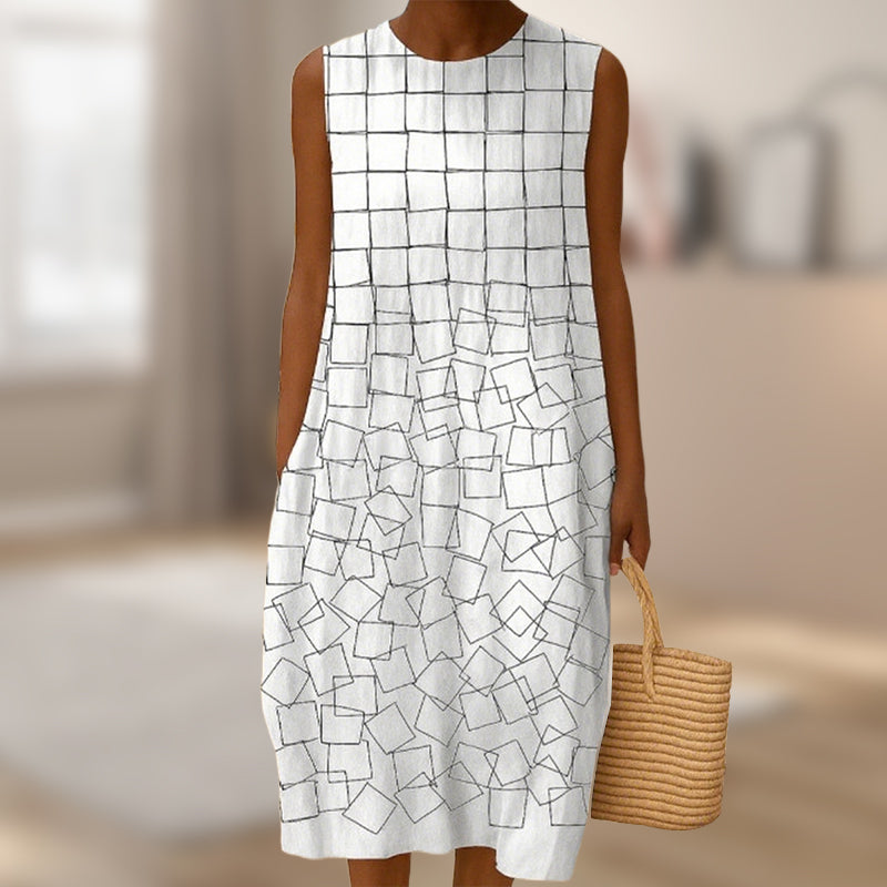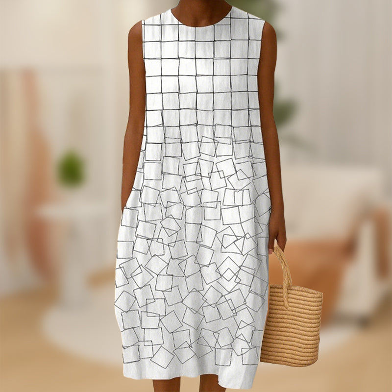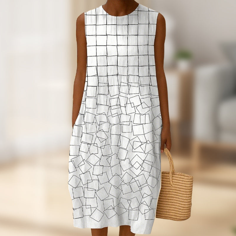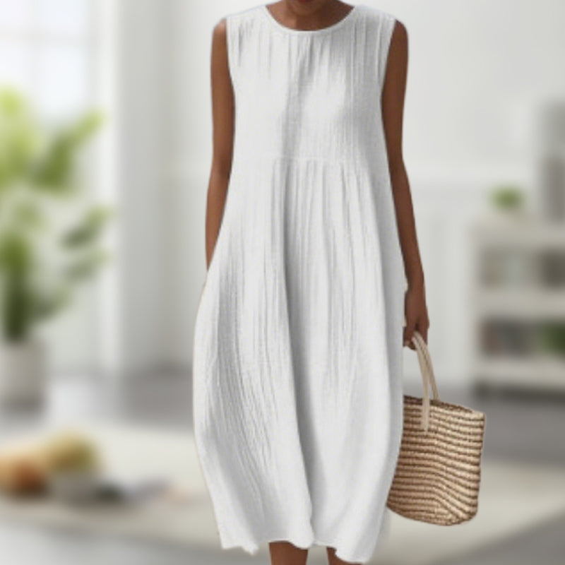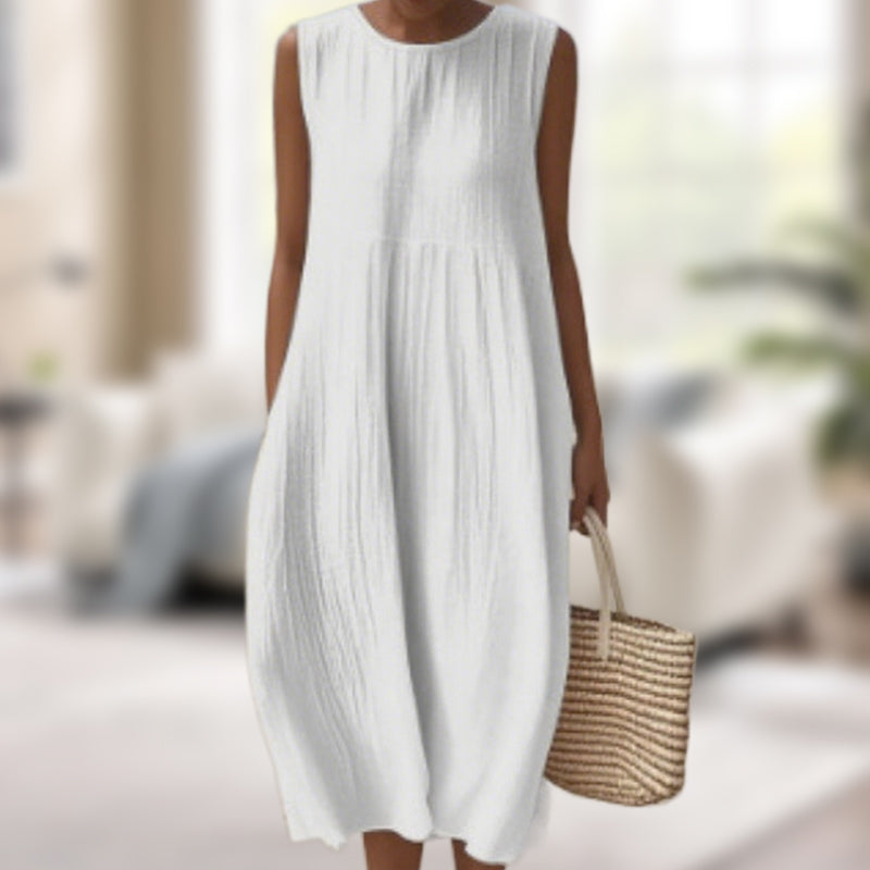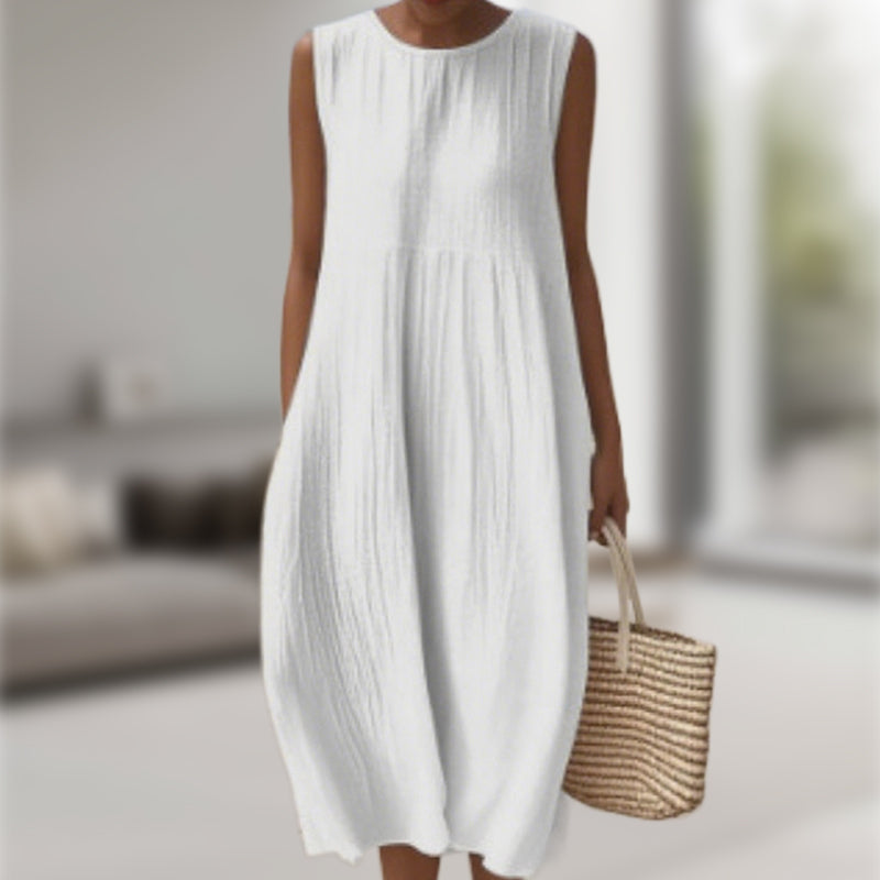 МИНИМАЛИСТИЧЕН ДИЗАЙН - Изчистените, плътни цветове и семплата кройка създават полиран външен вид, който не изисква усилия. Дизайнът без ръкави и силуетът тип „А“ ласкаят различни типове тела, предлагайки вечен стил с модерна простота.