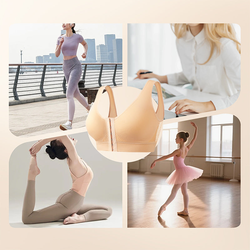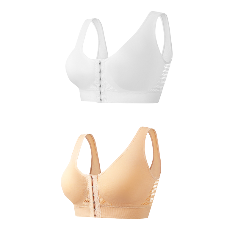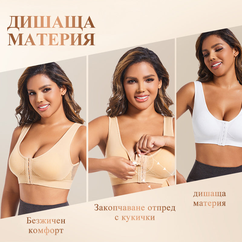 ЛЕСНО ЗАКОПЧАВАНЕ ОТПРЕД: Облечете сутиена за секунди благодарение на умната система за закопчаване отпред. Три реда кукички позволяват регулиране на обиколката според нуждите през деня, а слагането и свалянето е просто – без досадно закопчаване на гърба.