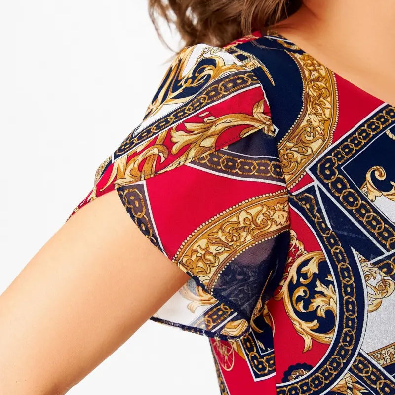 Тази рокля е с богат ретро принт, който добавя класически чар към гардероба ви. Изящният дизайн на мотива я прави идеален избор за жените, които обичат ретро естетиката и искат да покажат своята уникална индивидуалност.