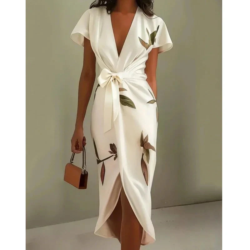 ЕЛЕГАНТНА V-образна кройка - Внимателно подреденото под ъгъл V-образно деколте издължава талията, като същевременно осигурява умерено покритие, създавайки елегантен силует, който гарантира удобен и изискан външен вид за всеки повод.