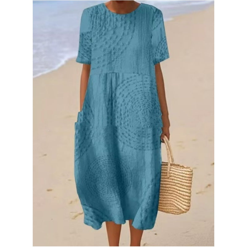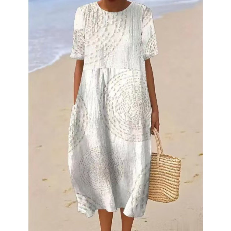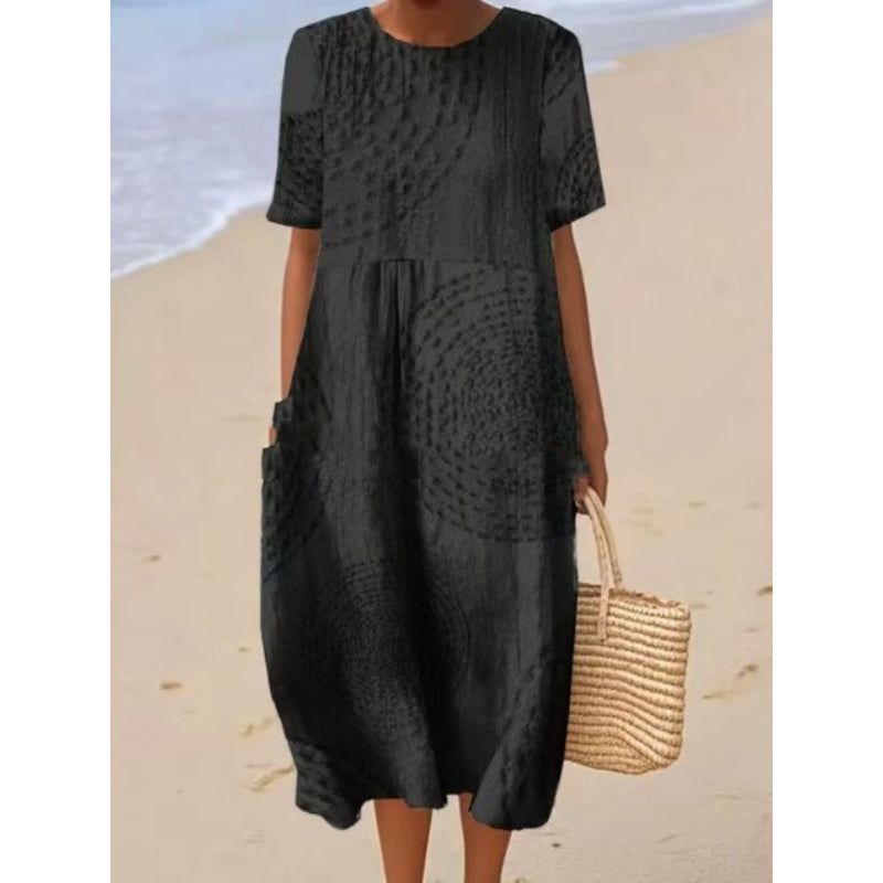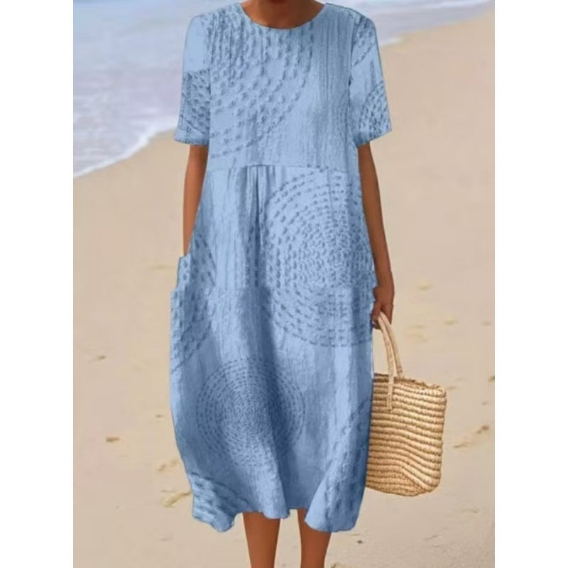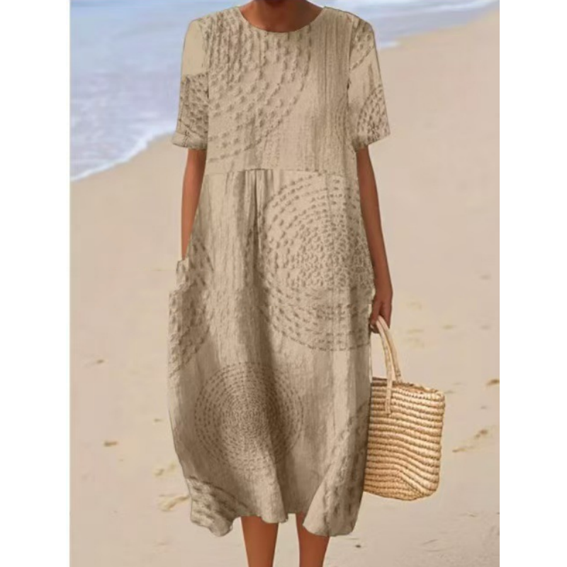 Улеснен & LOOSE FIT: Проектирана за удобство, тази миди рокля е с релаксираща, свободна кройка, която осигурява лекота на движенията и дишане, което я прави идеална за небрежно ежедневно носене.