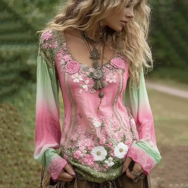 Пакетът включва: 1* Дамска ежедневна блуза с принт и обло деколте