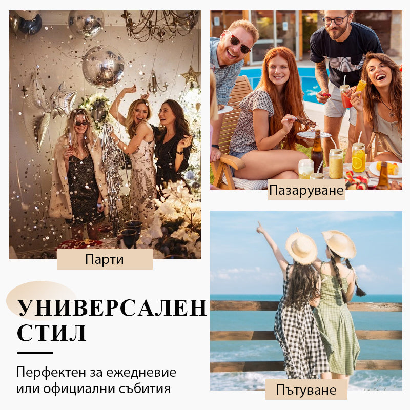 УНИВЕРСАЛЕН СТИЛ ЗА ВСЯКАКВИ ПОВОДИ – С класическа кръгла яка и детайли от кристали, този комплект е идеален за зрели жени, които търсят вечен стил и комфорт. Той повишава самочувствието ви и ви придава изискан вид.