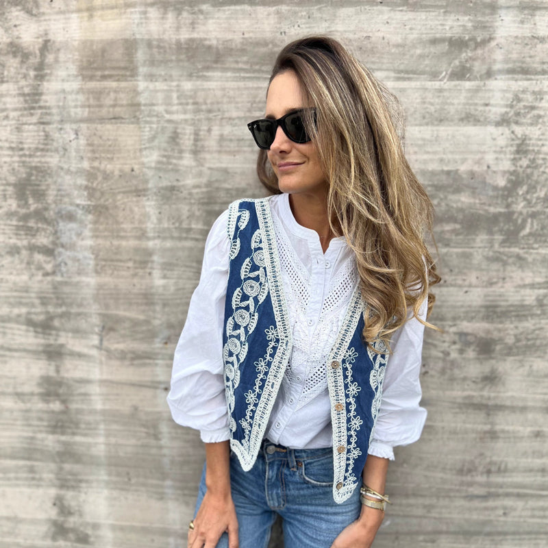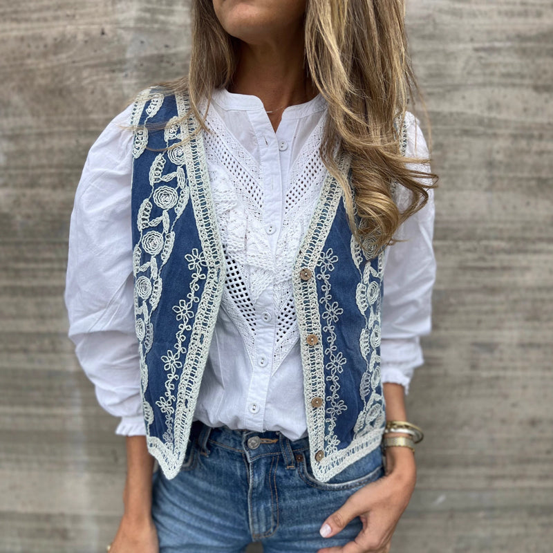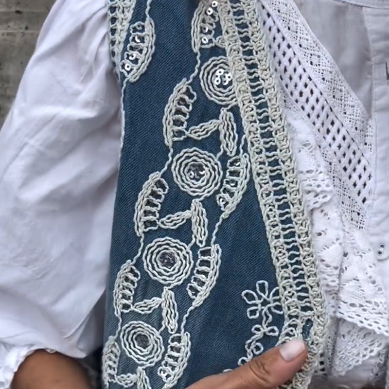 Пакетът включва: 1*дамска винтидж жилетка с копчета отпред и бродерия