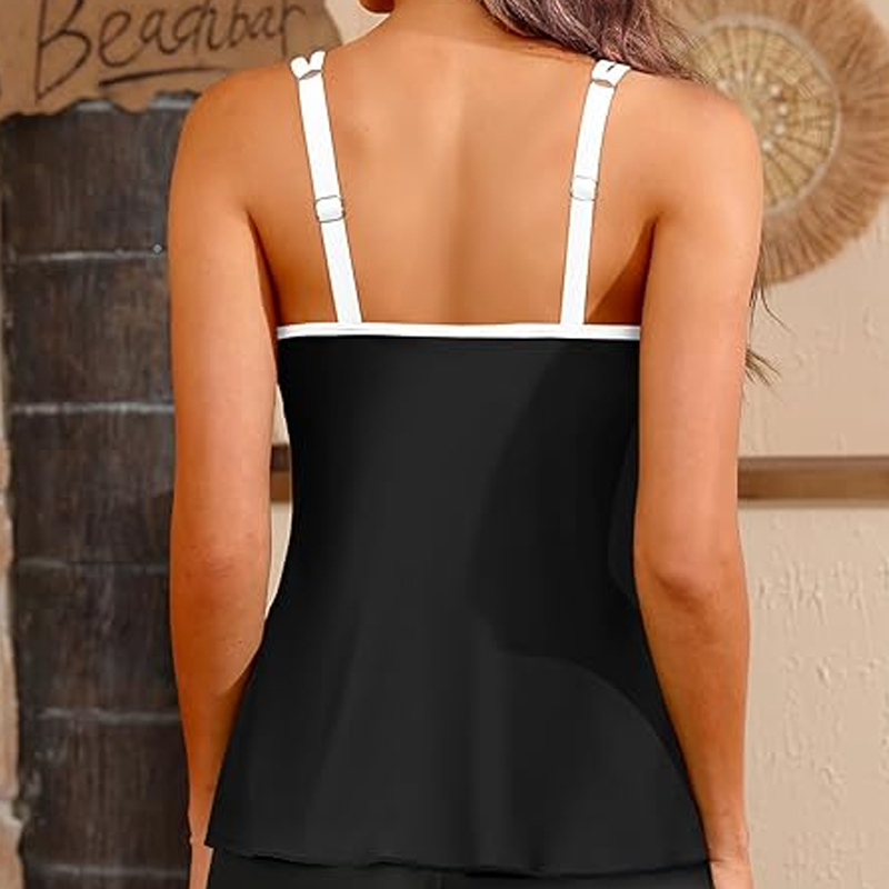ЕЖЕДНЕВЕН ТОП ТАНКИНИ С КЪСИ ПАНТАЛОНИ: Насладете се на стил без усилия с този комплект бански от 2 части, създаден за комфорт и гъвкавост. Горната част на танкини е със свободна кройка, идеална за излежаване край басейна или за разходки на плажа.